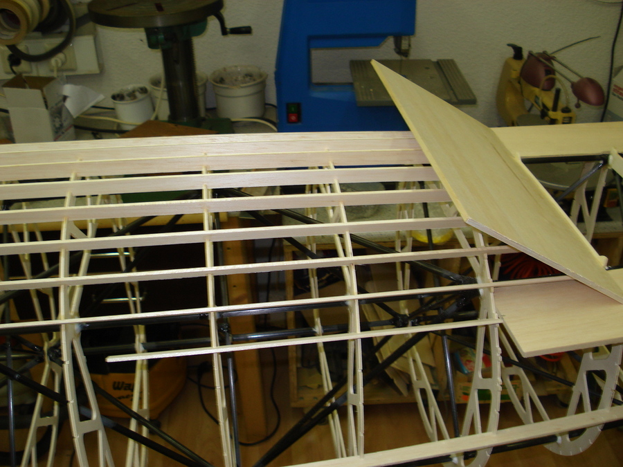 Einsetzen der Balsaholz Stringer.
